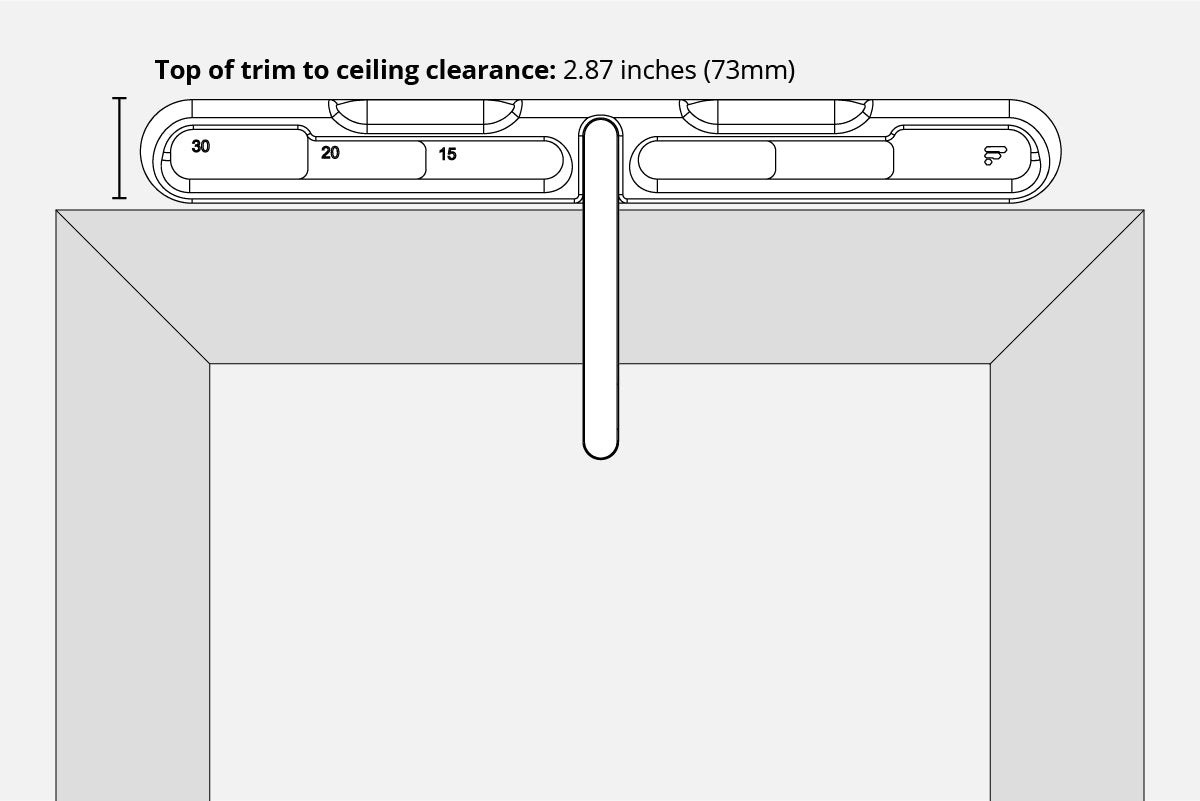 There needs to be more than 2.87 inches (73mm) above the trim and below the ceiling.