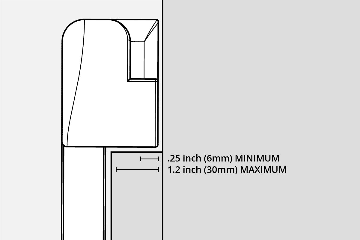 Trim thickness needs to be between .25 inches (6mm) and 1.2 inches (30mm)